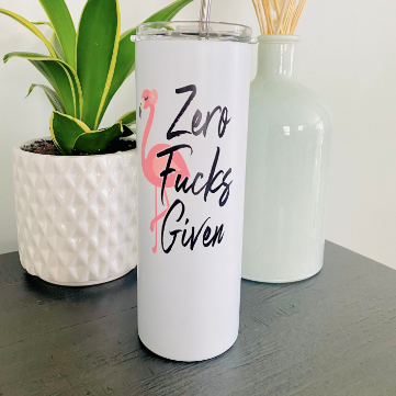 Our 20oz tumblers are made out of stainless steal. They keep beverages hot or cold for 8+ hours. Made with permanent ink - these are sure to be your new fave on-the-go travel cup!