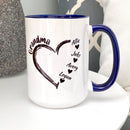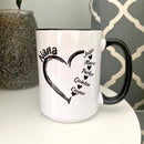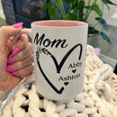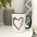 These super cute family heart mugs have the names of the people you cherish most proudly displayed. Printed with permanent ink, these 15oz ceramic beauties are both microwave and dishwasher safe and have the image on both sides of the mug.