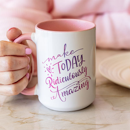Printed with permanent ink, these 15oz ceramic beauties are both microwave and dishwasher safe and have the image on both sides of the mug.