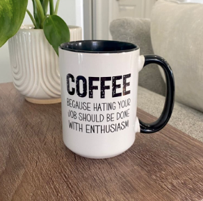 Printed with permanent ink, these 15oz ceramic beauties are both microwave and dishwasher safe and have the image on both sides of the mug.