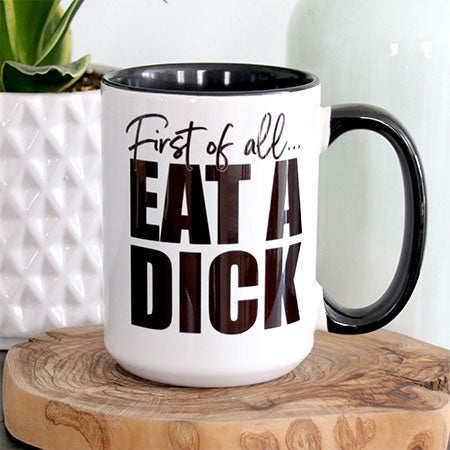 Printed with permanent ink, these 15oz ceramic beauties are both microwave and dishwasher safe and have the image on both sides of the mug.