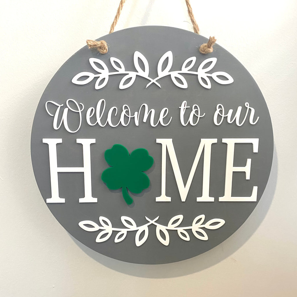 Our round 16" interchangeable welcome signs are made out of solid wood, sanded, stained and sealed by hand with your choice of brown, black or grey stain. They measure 16" in diameter. The letters are laser cut from solid white...