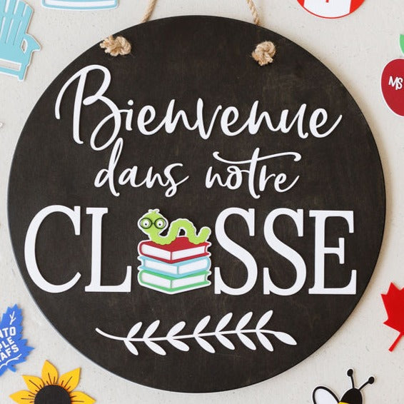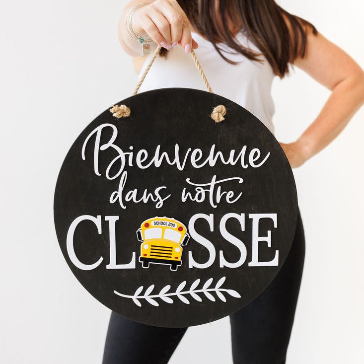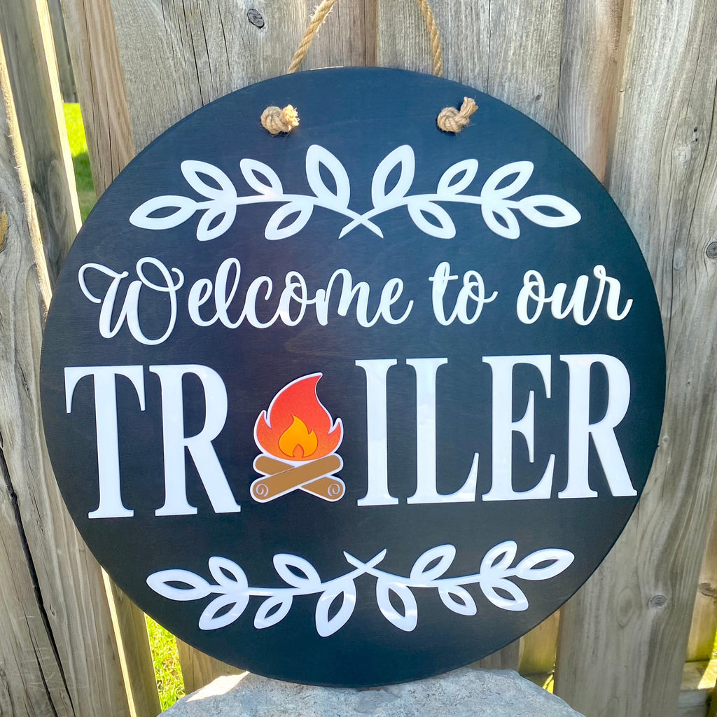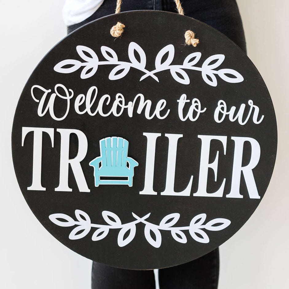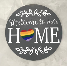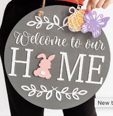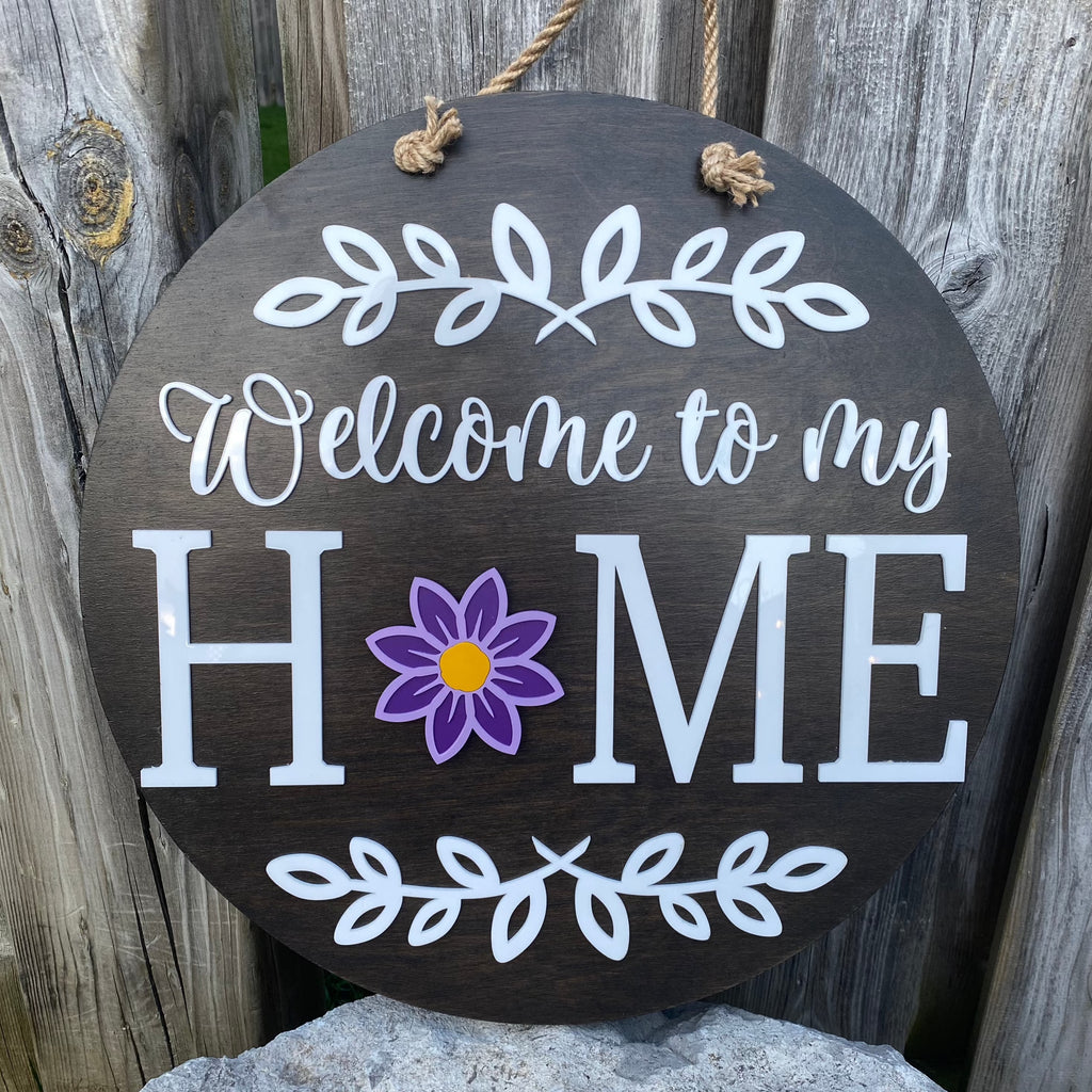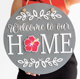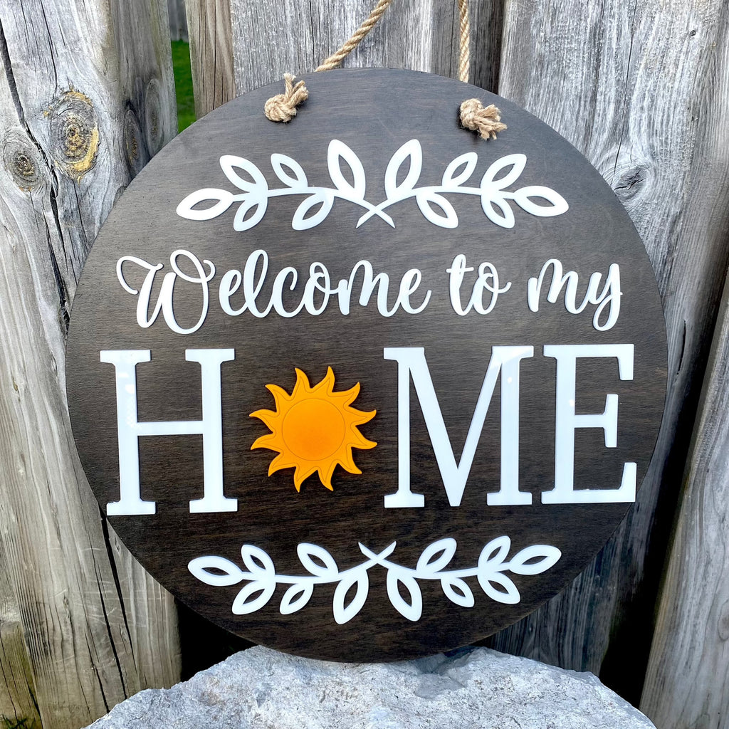 Our round 16" interchangeable welcome signs are made out of solid wood, sanded, stained and sealed by hand with your choice of brown, black or grey stain. They measure 16" in diameter. The letters are laser cut from solid white acrylic. They come with 4 inserts of your choice as the interchangeable “O”.