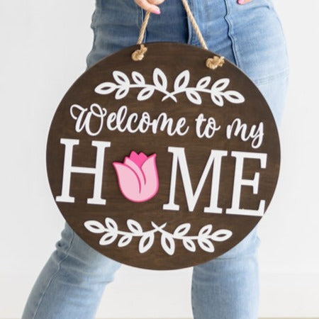 - 16" Interchangeable ROUND Welcome to Our Home (all block font)