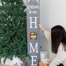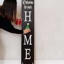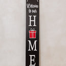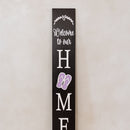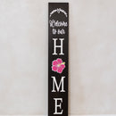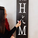 Our welcome signs are made out of solid pine hardwood, sanded, stained and sealed by hand with your choice of brown, black or grey stain. They measure 56 inches tall by 9.25 inches wide. The letters are laser cut from solid white acrylic. They come with 2 inserts of your choice as the interchangeable “O”.