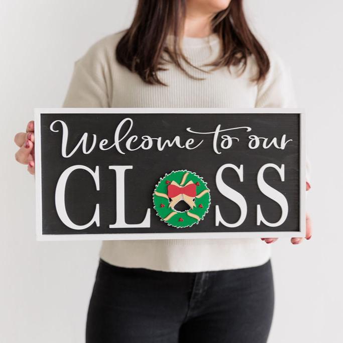 Our rectangle 16" interchangeable Welcome to our Class Signs are made out of solid wood, sanded, stained and framed by hand with your choice of brown, black or grey stain. They measure 7.15x16". The letters are laser cut from s...