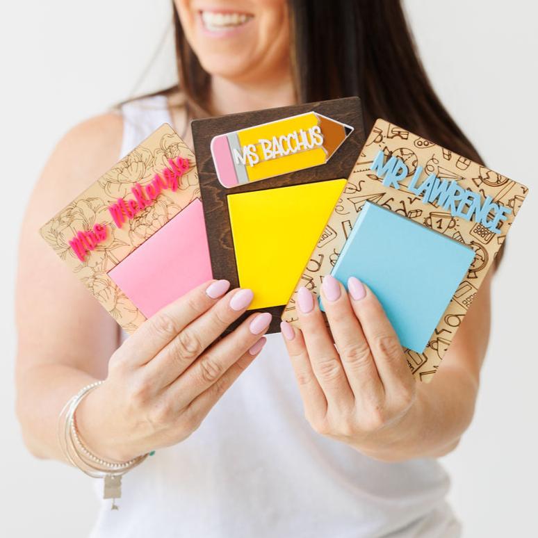 These Post-it Note holders make the perfect addition to your favourite teachers desk. Put your design choice and teachers name in the notes section.